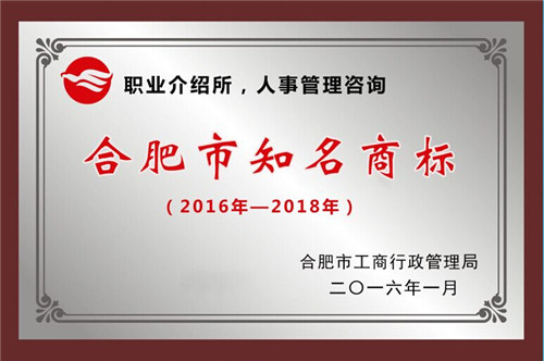 2016年1月,遠(yuǎn)創(chuàng)人力集團榮獲安徽省合肥市工商行政管理局“合肥市知名商標(biāo)”稱號。