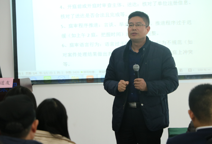 姚育文副院長給學員簡要梳理了“勞動人事爭議案件處理程序”,對于案件的處理程序以及優(yōu)化、案件規(guī)范、效率、開庭細則等內容做出分享,讓仲裁員在實際案件處理中避免程序繁瑣,提高效率。