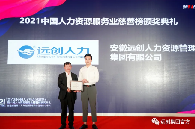 2021年4月23日,由中國領(lǐng)先的人力資源行業(yè)第三方媒體平臺“第一資源”發(fā)起的2021第六屆中國人才峰會(成都站)暨中國人力資源服務(wù)業(yè)慈善榜頒獎(jiǎng)典禮在成都隆重舉行,遠(yuǎn)創(chuàng)人力資源集團(tuán)作為獲獎(jiǎng)企業(yè)受邀出席并領(lǐng)獎(jiǎng)。