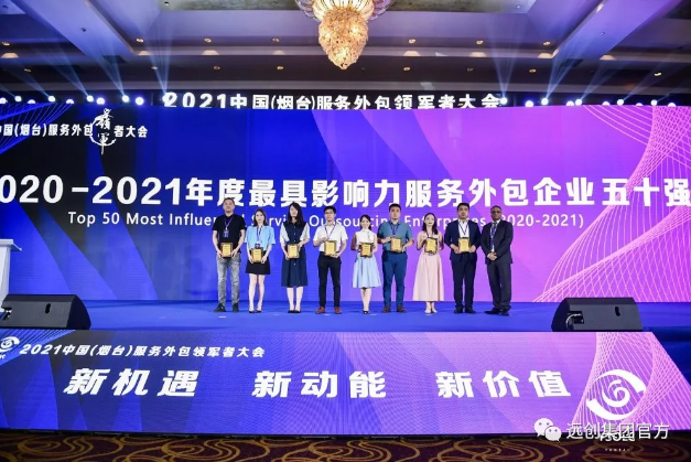 6月24日,2021中國(煙臺)服務(wù)外包領(lǐng)軍者大會開幕式暨全球服務(wù)外包創(chuàng)新發(fā)展高峰論壇在山東煙臺隆重舉行。本次論壇揭曉了“2020-2021年度最具影響力服務(wù)外包企業(yè)五十強(qiáng)”獎項,遠(yuǎn)創(chuàng)人力資源集團(tuán)作為獲獎企業(yè)受邀參加活動。