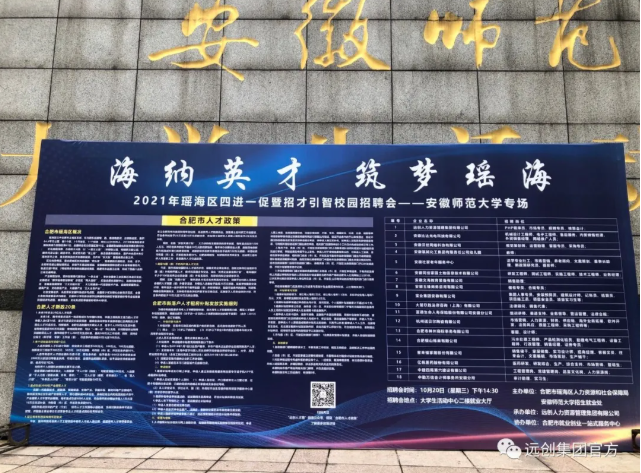 為大力引進優(yōu)秀高校畢業(yè)生來肥就業(yè)創(chuàng)業(yè),積極落實合肥市招才引智工作,更好的為區(qū)域經(jīng)濟發(fā)展提供人才支撐,2021年10月20日, 合肥市瑤海區(qū)“四進一促”暨招才引智安徽師范大學專場招聘會成功舉辦。