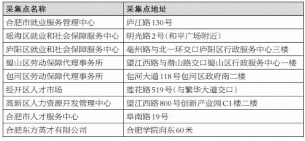 合肥市個體參保人員數(shù)據(jù)采集點地址