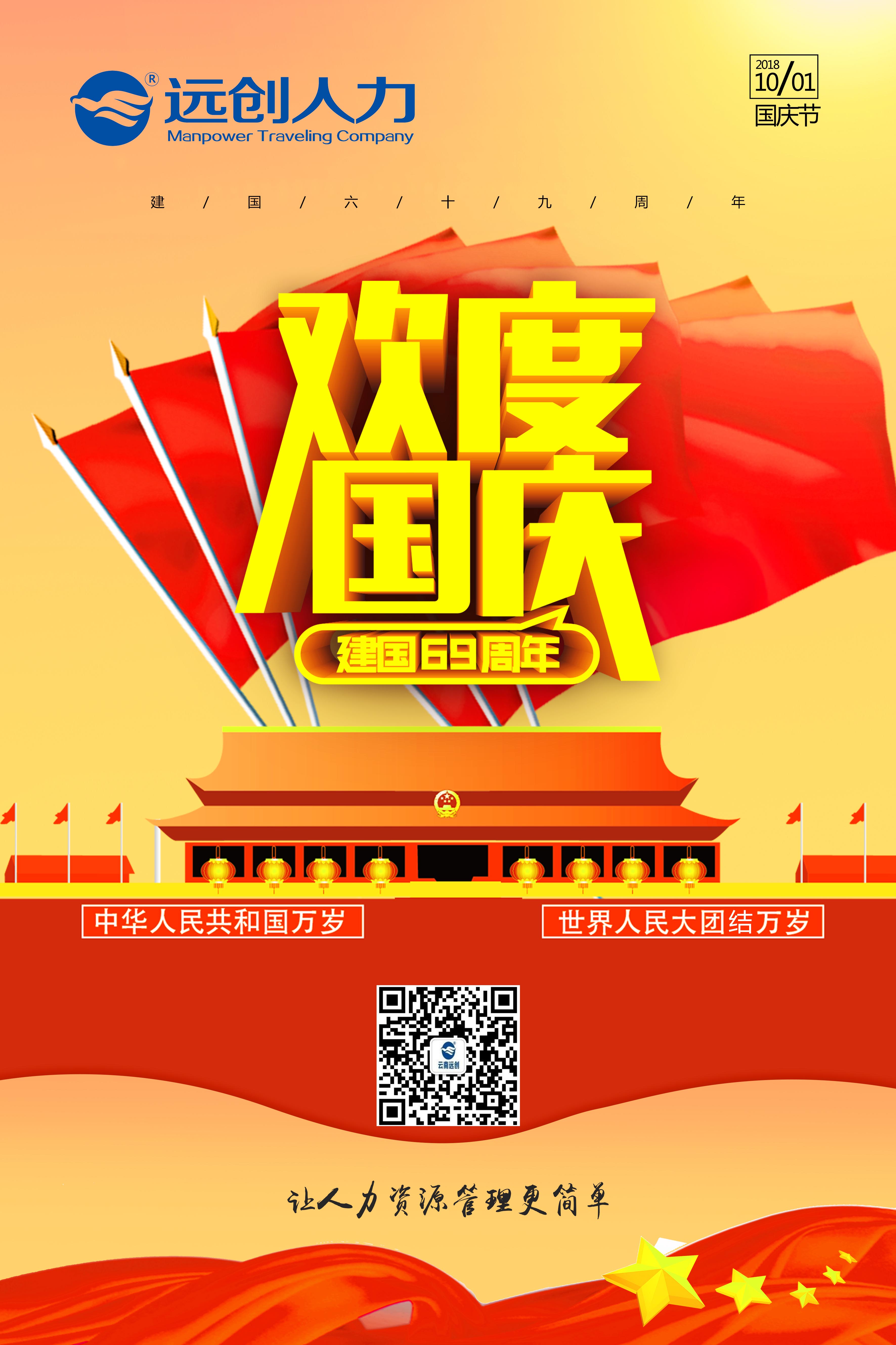 根據(jù)《國務(wù)院辦公廳關(guān)于2018年部分節(jié)假日安排的通知》,云南遠(yuǎn)創(chuàng)人力資源管理有限公司2018年國慶節(jié)放假安排如下:
