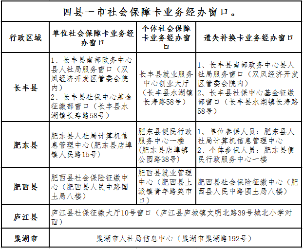 合肥市社會保障卡服務(wù)管理中心一樓(廬江路130號):