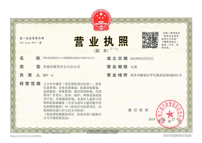 熱烈慶祝遠創(chuàng)人力河南省級公司焦作分公司于2019年3月27日正式成立,遠創(chuàng)人力集團旗下省級,分,子公司已達80家。