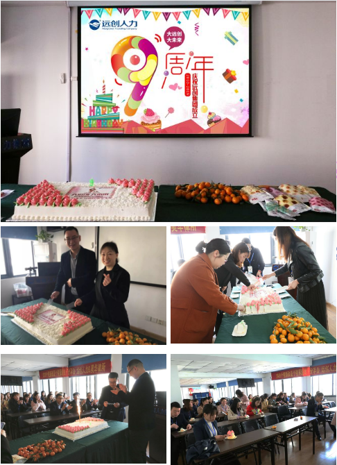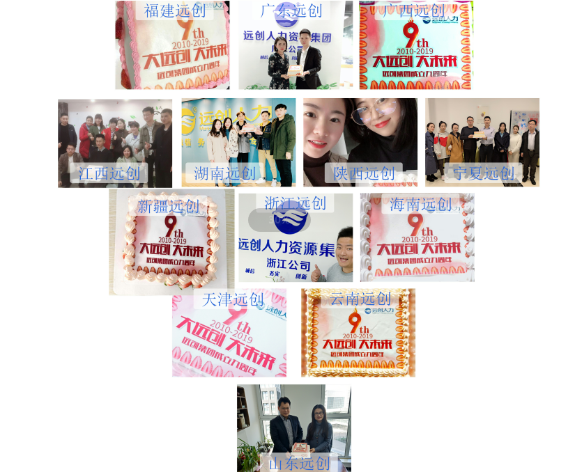 今天,遠創(chuàng)人力資源集團全國18個省級分支機構的小伙伴們在上午10點59分共同為集團的九周年舉行了生日活動。