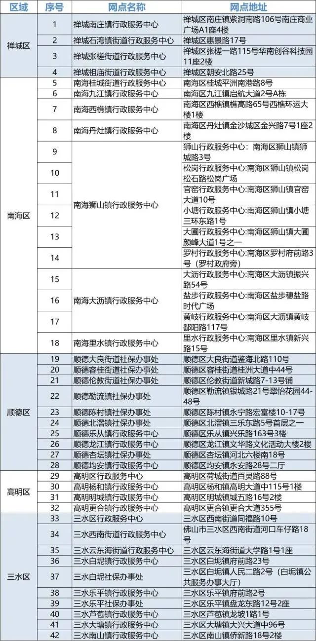 佛山市社保42個“全市通辦”服務(wù)網(wǎng)點