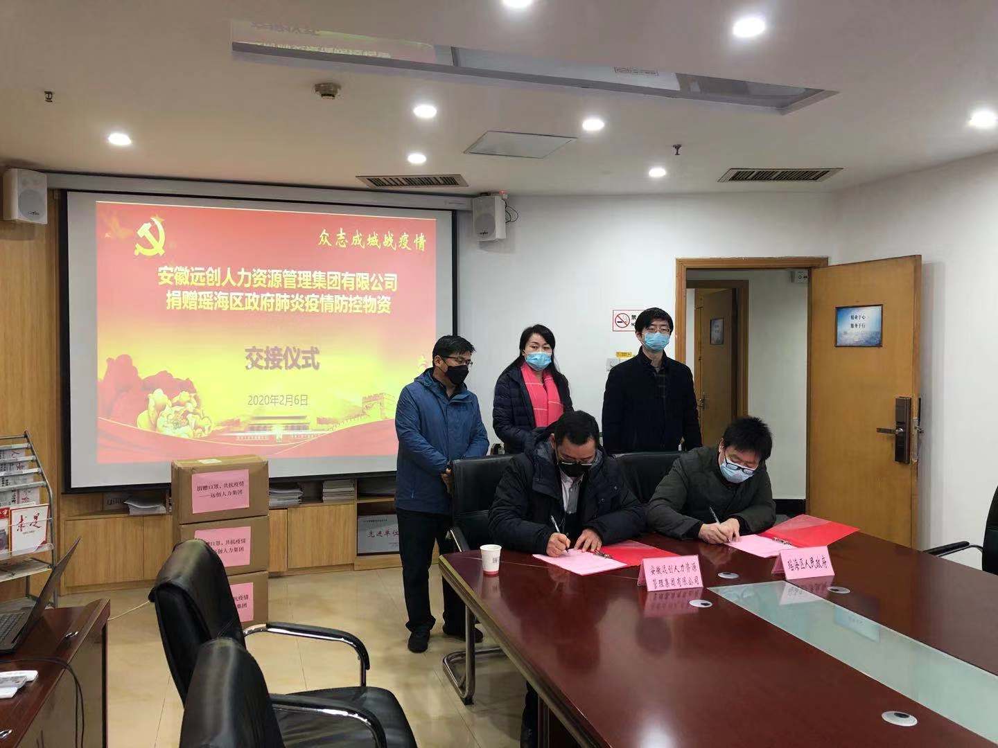 11月10日下午,遠(yuǎn)創(chuàng)人力(民建企業(yè))向合肥市瑤海區(qū)人民政府捐款10萬(wàn)元,助力疫情防控工作?,幒^(qū)人民政府副區(qū)長(zhǎng)范媛媛、瑤海區(qū)人力資源和社會(huì)保障局局長(zhǎng)張建寧、遠(yuǎn)創(chuàng)人力資源集團(tuán)總經(jīng)理董濤參加此次捐贈(zèng)儀式。