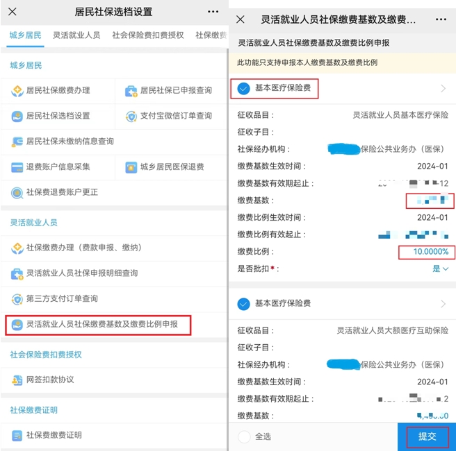 注意:如果您是新參保人員,需要先點擊【靈活就業(yè)人員社保繳費基數(shù)及繳費比例申報】,選擇繳費檔次,然后再繳費。