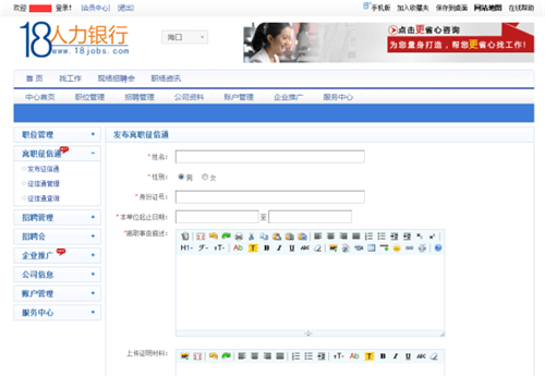 18人力銀行更是增添了特色離職征信通功能,主要是讓招聘企業(yè)更清晰地查詢員工的征信情況,大大避免因員工個人征信情況引起不必要的勞動糾紛。