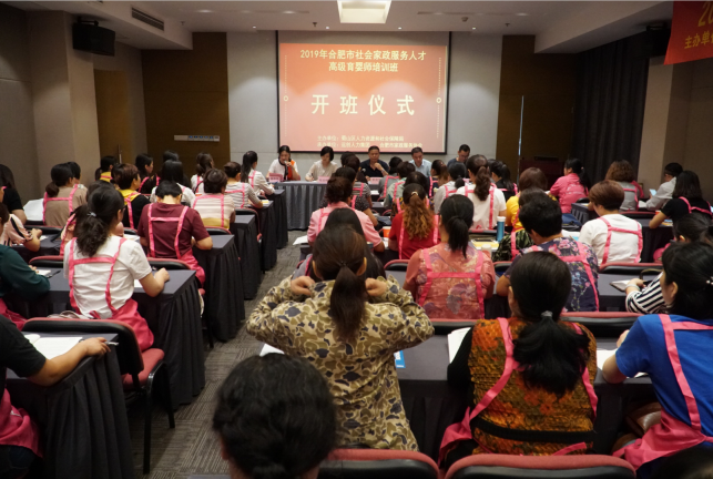 為了加大“幸福合肥、和諧社區(qū)”人才建設(shè)保障力度,2019年9月2日,合肥市社會家政服務(wù)人才高級育嬰師培訓(xùn)班在和頤酒店(原長江飯店)正式開班。此次培訓(xùn)班由蜀山區(qū)人力資源和社會保障局主辦,遠(yuǎn)創(chuàng)人力資源集團(tuán)承辦,學(xué)員學(xué)習(xí)熱情高漲,會場座無虛席,共計(jì)100余人參加了培訓(xùn)班。