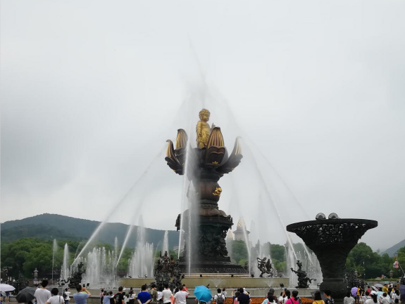 之后,來(lái)到了靈山勝境的大型音樂(lè)動(dòng)態(tài)群雕“九龍灌浴,花開見佛”。